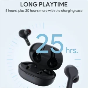 ایربادهای بیسیم واقعی AUKEY EP-T25*1، محفظه شارژ*1، کاورهای گوشی (S/M/L)، کابل USB-C*1، راهنمای کاربر*1، راهنمای شروع سریع*1