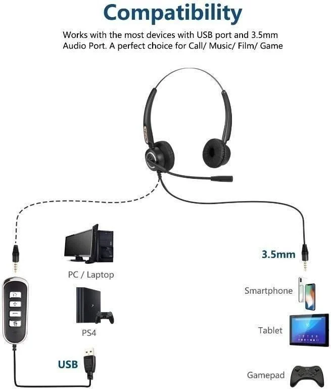 این هدست تلفن سیمی دارای یک راه اتصال است: جک 3.5 میلی متری برای تلفن همراه، تبلت و پد بازی.
