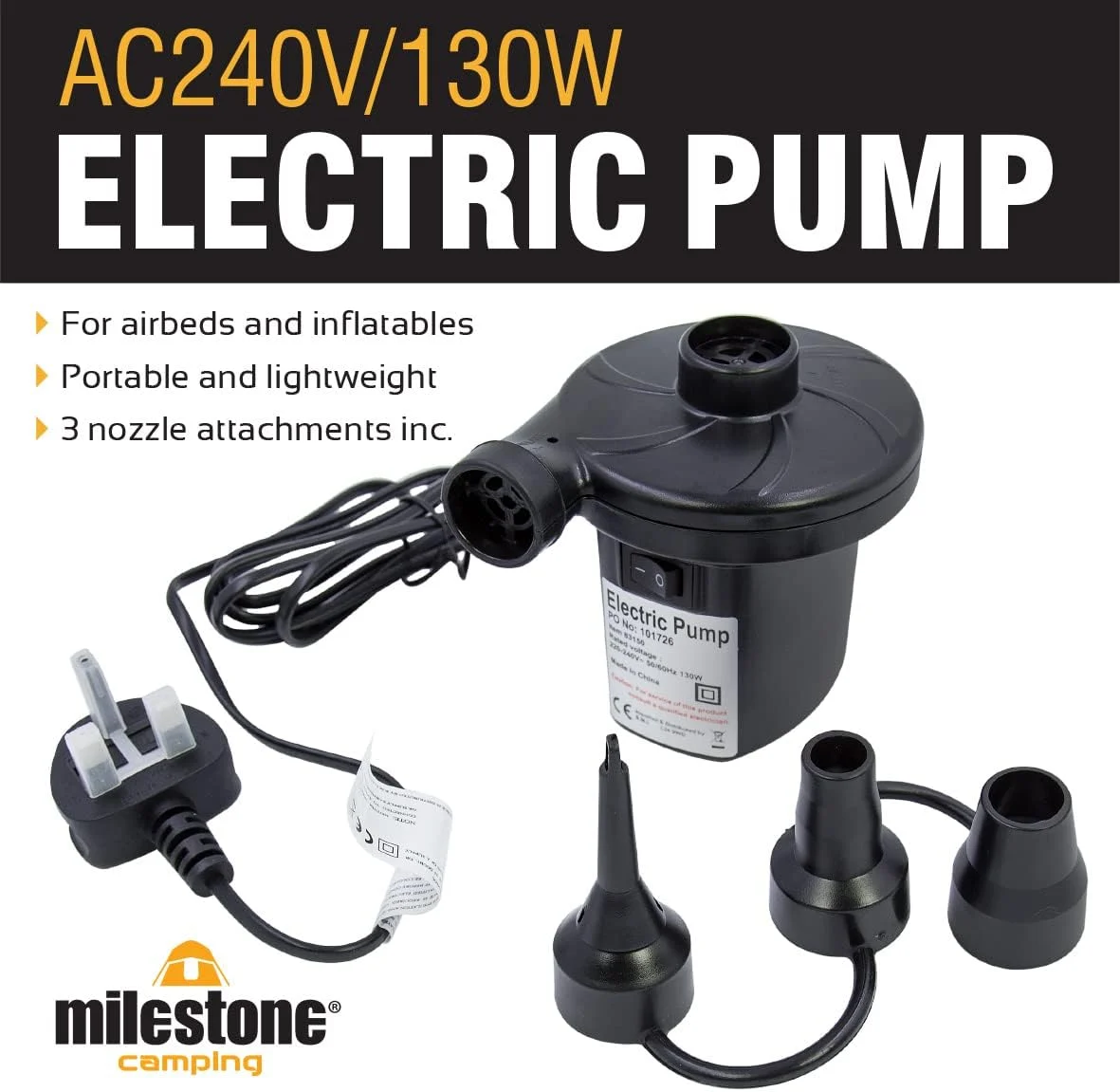 پمپ باد برقی Milestone قدرت بالا | نام تجاری بریتانیا و گواهینامه های ایمنی اروپا و جزو بار آمازون آلمان