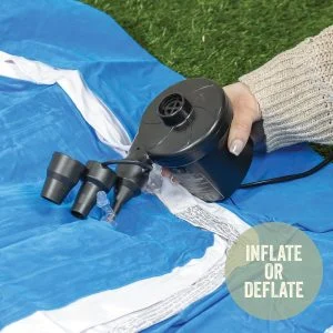 - – این پمپ باد برقی روشی ساده برای باد کردن یا باد کردن تختهای هوا، اسباببازیهای بادی، استخرهای پارویی و هر محصول بادی دیگری ارائه میکند.