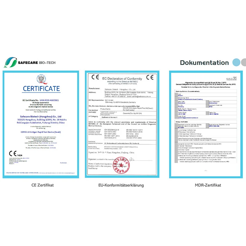 تست سریع آنتی ژن SAFECARE COVID-19 یک به اصطلاح ایمونواسی کروماتوگرافی در قالب جریان جانبی است. خودآزمایی سریع آنتی ژن تکه های پروتئینی ویروس و در نتیجه حضور فیزیکی مستقیم آن در بدن را بررسی می کند. با کمک سواب گرفته شده از حفره بینی جلویی انجام می شود. این با یک محلول بافر اسپیک می شود و سپس روی کاست آزمایش اعمال می شود.